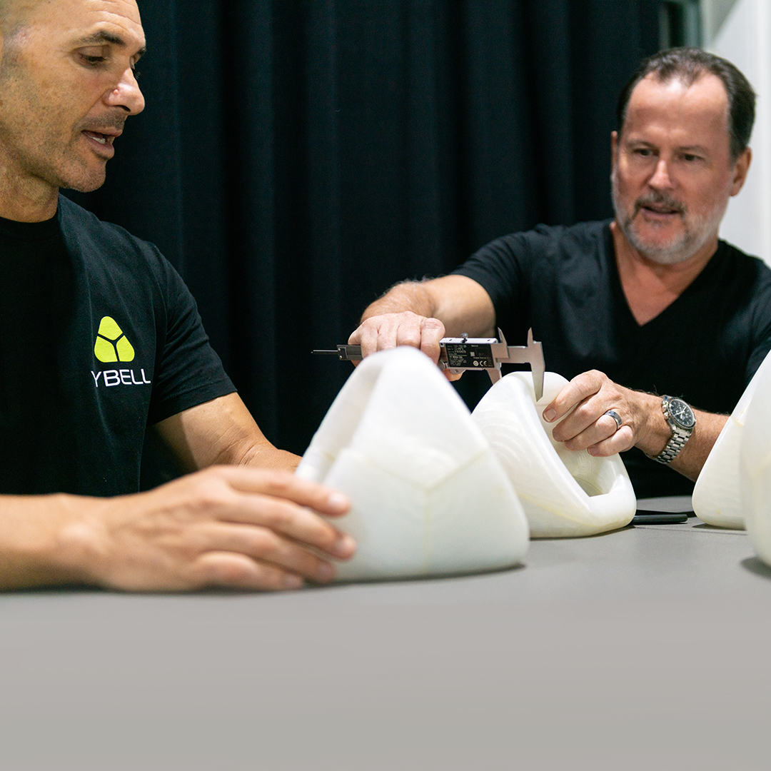 Il utilise d’abord des équipements traditionnels comme des haltères, kettlebells et medecine balls pour créer sa propre méthode d’entrainement de High Intensity Resistance Training. Mais avec l’augmentation du nombre de ses membres, il devient rapidement impossible d’intégrer plusieurs matériels dans ses séances. En s’associant avec Michael « Hop » Hoppe, un designer industriel professionnel depuis 30 ans, Az et Hop créent la solution au problème. YBell est né ! Un seul appareil pour tous les exercices qu’il enseigne et bien plus encore. L’utilisation d’un seul équipement permet des transitions rapides entre les exercices, ce qui rationalise les séances d’entraînement.